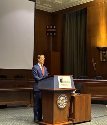Michael Stumo, Associate Director for Economic Policy and the Made in America Office, Office of Management and Budget, addresses WPRC members at the 17th Annual Legislative Summit in Washington, D.C., on April 15, 2026.